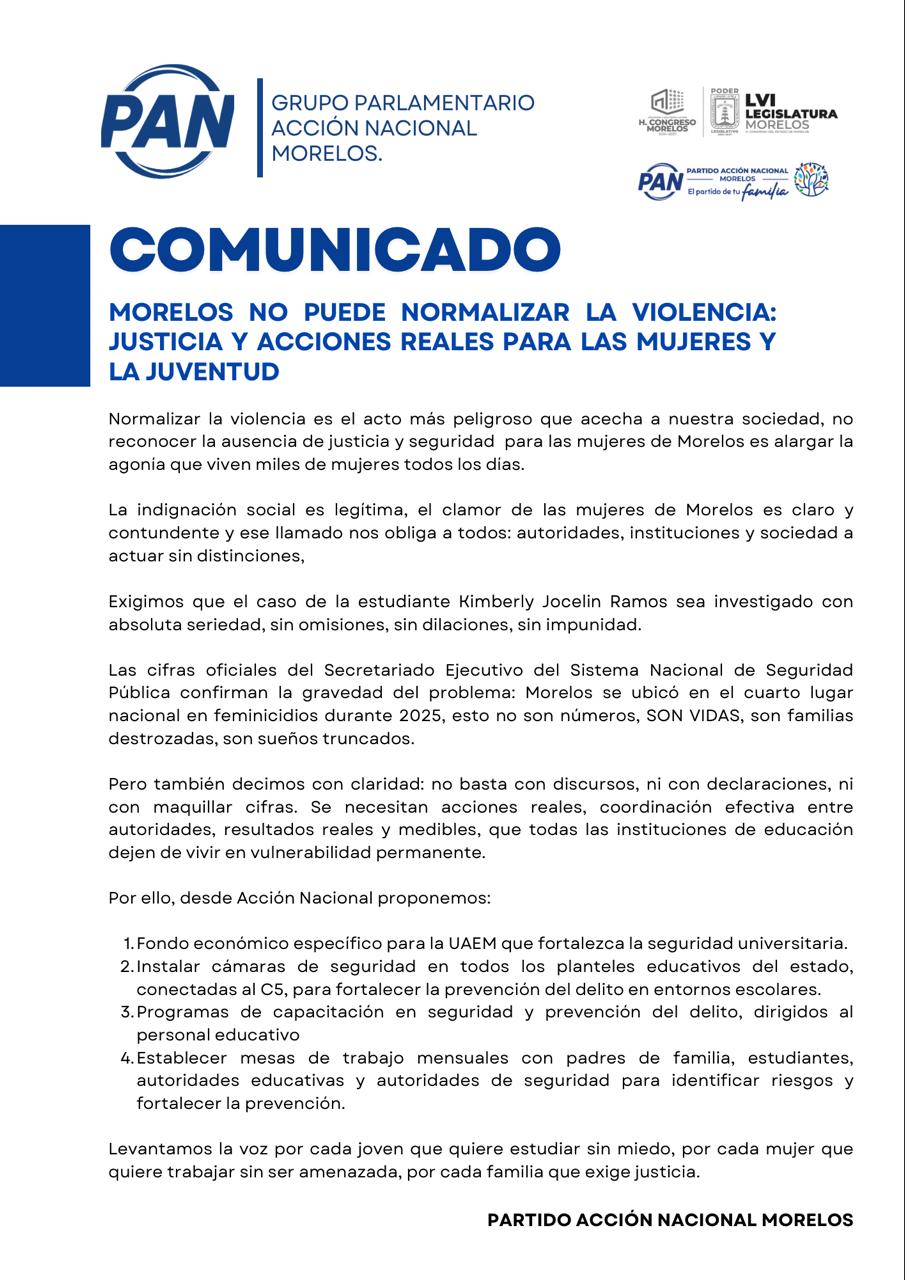 Jonathan Márquez, señaló que al igual que en el gobierno federal de la 4T, su aliado en Morelos Cuauhtémoc Blanco Bravo, ha colocado en una situación de emergencia a la entidad, al grado que EU incluyó a Morelos en la alerta de viajes, porque lo reconocen como el primer lugar en feminicidio y donde impunemente ocurren homicidios, feminicidios, violaciones y robos.