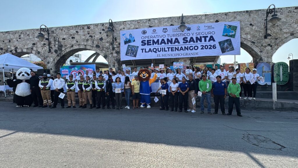 Tlaquiltenango.- El presidente municipal Enrique Alonso, junto con mandos de fuerzas de seguridad federales, estatales y municipales, dio el banderazo de arranque del operativo de seguridad Semana Santa 2026.