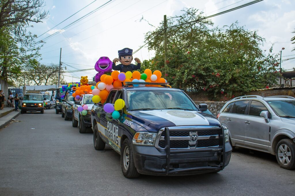 Como parte de las actividades por el Día del Niño y la Niña, el Ayuntamiento de Temixco realizó la Caravana por la Seguridad, en la que participaron autoridades municipales, corporaciones de seguridad y familias de distintas colonias.