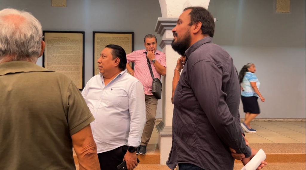 La protesta se dio durante la comparecencia del secretario del Ayuntamiento, Óscar Cano Mondragón, donde acusaron exclusión de las mesas de trabajo pese a solicitudes reiteradas para participar en las decisiones que afectan su actividad.