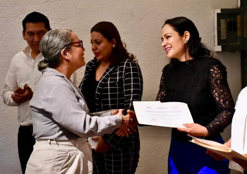 En Ayala, la presidenta del DIF, Sandra Bahena López, realizó la entrega de constancias de actividades y cursos realizados a través de la dirección de la Instancia de la Mujer a más de 150 mujeres del municipio.