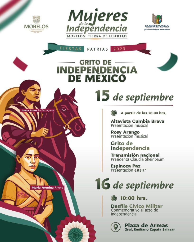 El acceso a todas las actividades será completamente gratuito, con el objetivo de que las familias morelenses y visitantes disfruten de esta celebración en un ambiente seguro, festivo y lleno de identidad nacional.