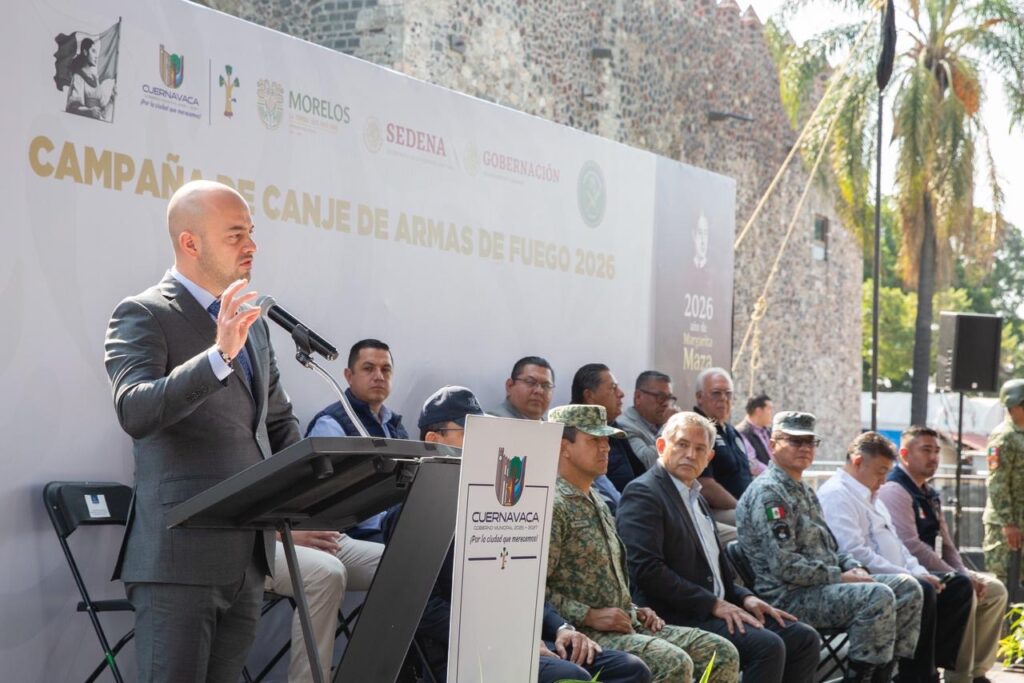 En tanto, el alcalde de Cuernavaca informó que el Ayuntamiento destinará alrededor de 200 mil pesos para intercambiar armas de fuego por una compensación económica, beneficio que estará disponible del 5 al 16 de marzo en distintos puntos de la ciudad. En el evento también estuvieron presentes autoridades militares, de la Guardia Nacional y representantes municipales.