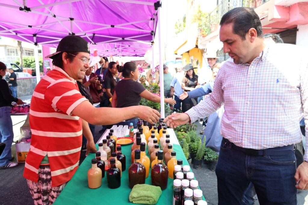 Tras el corte de listón, las autoridades recorrieron los stands para promover directamente el consumo de productos artesanales con el fin de dar visibilidad al trabajo de las familias temixquenses.