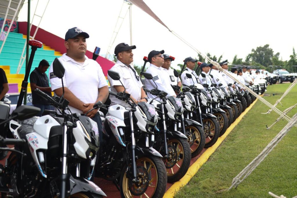 A través de recursos del Fondo de Aportaciones para el Fortalecimiento de los Municipios (fortamun), se dotó a la corporación con 13 camionetas pickup, 10 vehículos sedán, 7 cuatrimotos, 14 motocicletas, 141 uniformes, 107 chalecos tácticos nivel 3 y 54 pares de placas balísticas, equipamiento que permitirá mejorar las labores de vigilancia y atención en campo por parte de los elementos preventivos y de tránsito.