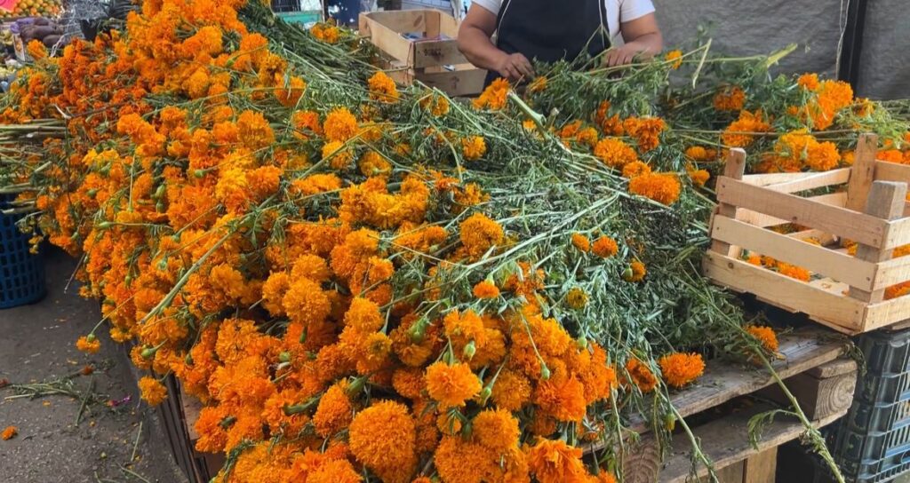 Cuernavaca, Mor. – Tras dos años sin actividad, la Feria de Día de Muertos se volvió a instalar en el primer andén del mercado Adolfo López Mateos de Cuernavaca, generando optimismo entre los comerciantes. Así lo explicó Iván Miranda, vendedor de flor de cempasúchil.