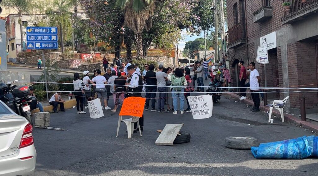 Cuernavaca, Mor. – Vecinos de la calle Atlacomulco bloquearon esta vialidad de Cuernavaca para exigir a las autoridades municipales que se frene la expansión de negocios de florerías, al asegurar que su operación les ha generado diversas afectaciones. La inconformidad fue expuesta por el vecino Sergio Uribe.