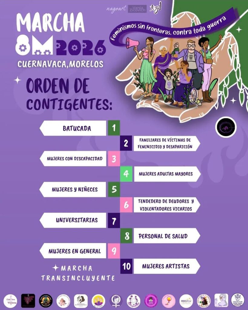 💜 8M en Cuernavaca: “Feminismos sin fronteras, contra toda guerra”